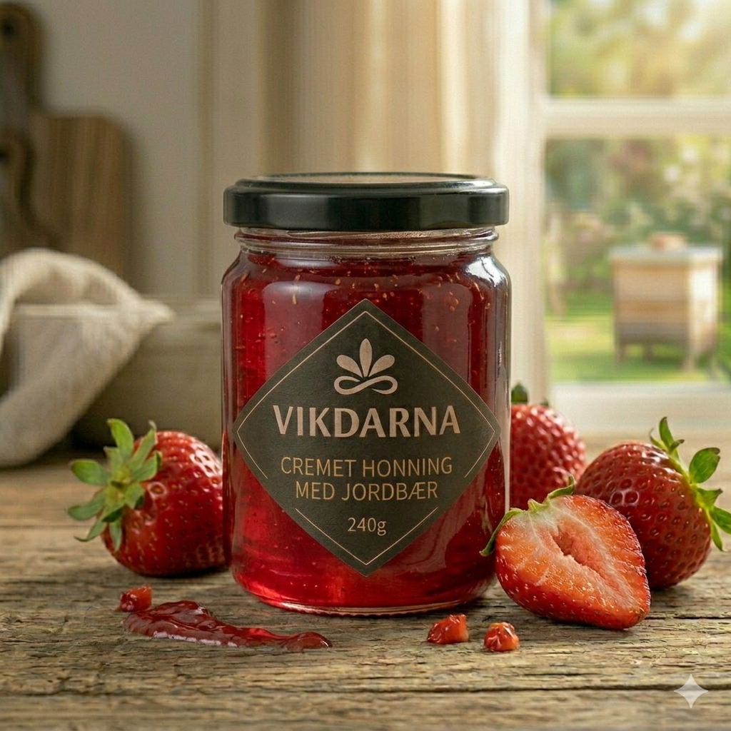 Denne variant har en mild og imødekommende smag, hvor jordbær tilfører honningen en blød frugtighed, som mange vil føle sig hjemme i med det samme.